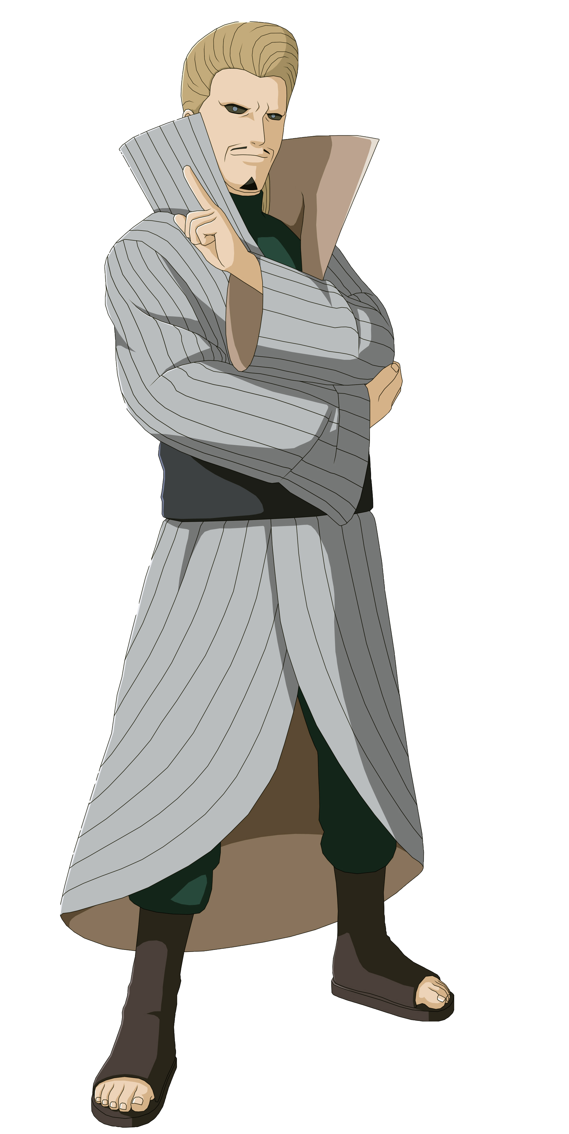 shinobi Kirigakure. Pakaian ini dikenakan di atas setelan hijau-gelap,